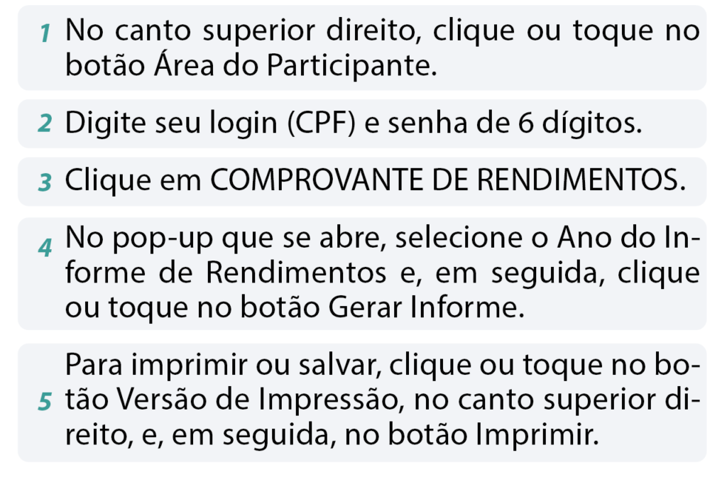 Para ter acesso ao seu Informe de Rendimentos para a Declaração do Imposto de Renda, siga os passos abaixo: